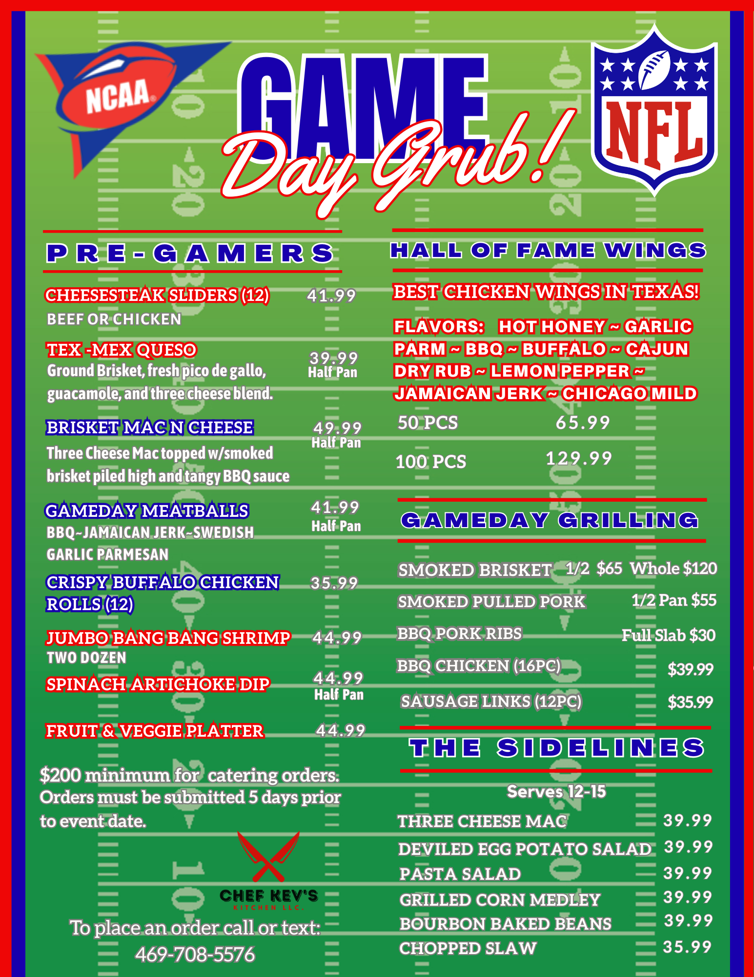 Orders must be placed within 72 hours of game day. Any orders placed after will be subjected to a $50 service fee.